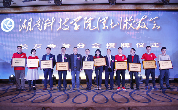 曾宝成为深圳校友会及新任会长段小燕授牌,校领导分别为新一届校友会理事会成员授牌。