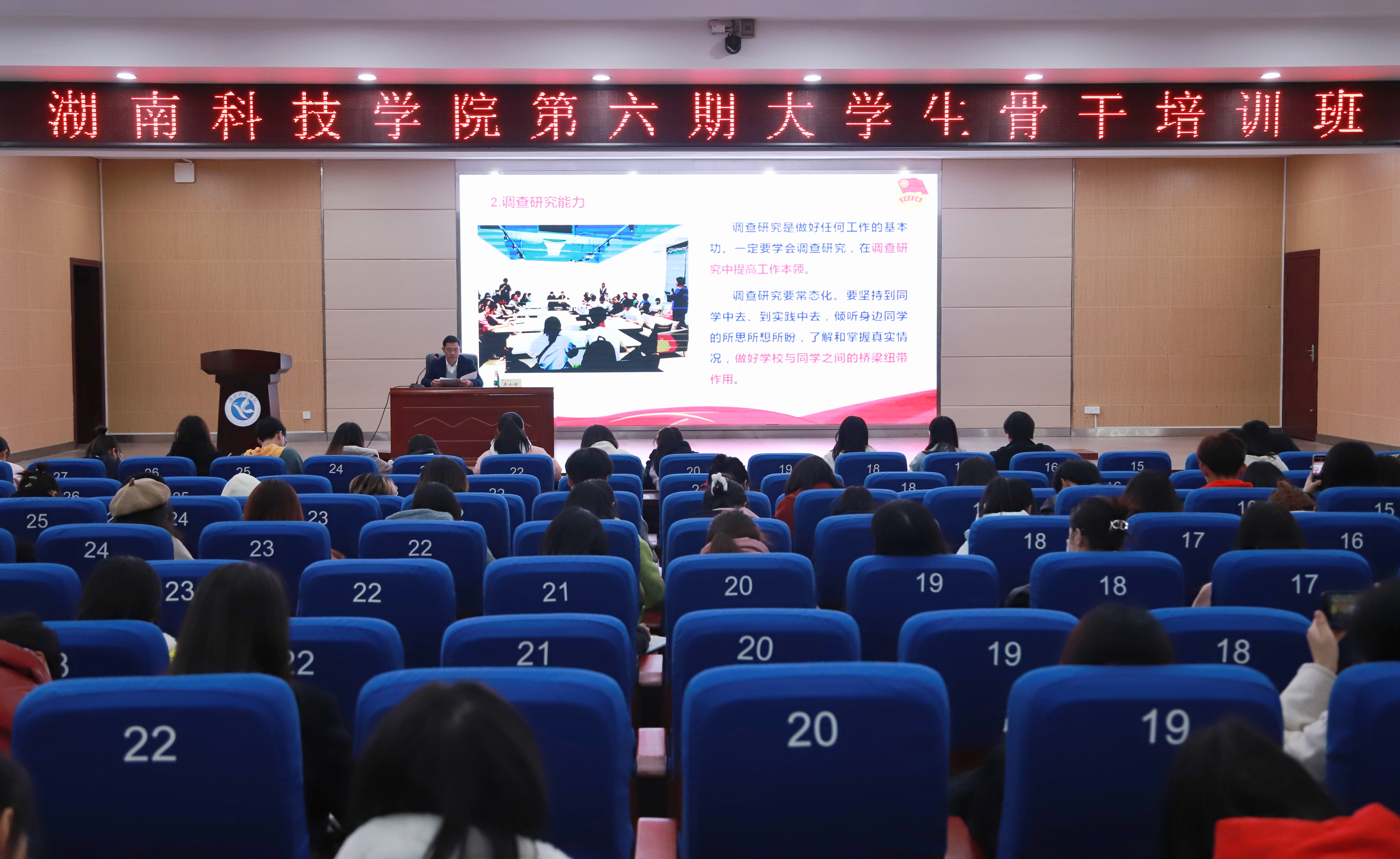 本网讯(记者 龙雨帆)12月7日晚,我校第六期大学生骨干培训在潇湘大讲堂举行。校党委委员、副校长吴小林以“锤炼过硬本领、勇担时代大任,让青春在拼搏中闪光”为题为全体学员授课。团课由校团委书记万李主持。