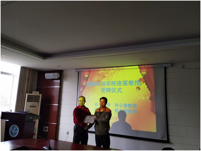 本网讯 10月20日,副校长李常健代表学校向美国杜兰大学医学院多肽药物研究实验室主要负责人孙立春教授、武汉大学特聘教授蔡车国颁发聘书,聘请为我校客座教授。受聘仪式在化学与生物工程学院举行。