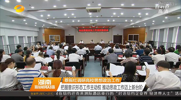 本网讯 9月21日下午,全省高校思想政治工作调研座谈会在长沙理工大学召开。省委常委、省委宣传部长蔡振红和全体与会代表深入课堂听课,长沙理工大学、米兰官方端网页版、中南大学、湖南大学、湖南师范大学、湖南第一师范学院6所高校党委书记、教师、辅导员、学生代表作了交流发言。蔡振红部长讲话强调,要进一步深入贯彻落实全国、全省高校思想政治工作会议精神,加强高校意识形态和思想政治工作,努力创新工作方法,确保高校思想政治工作始终沿着正确方向发展。