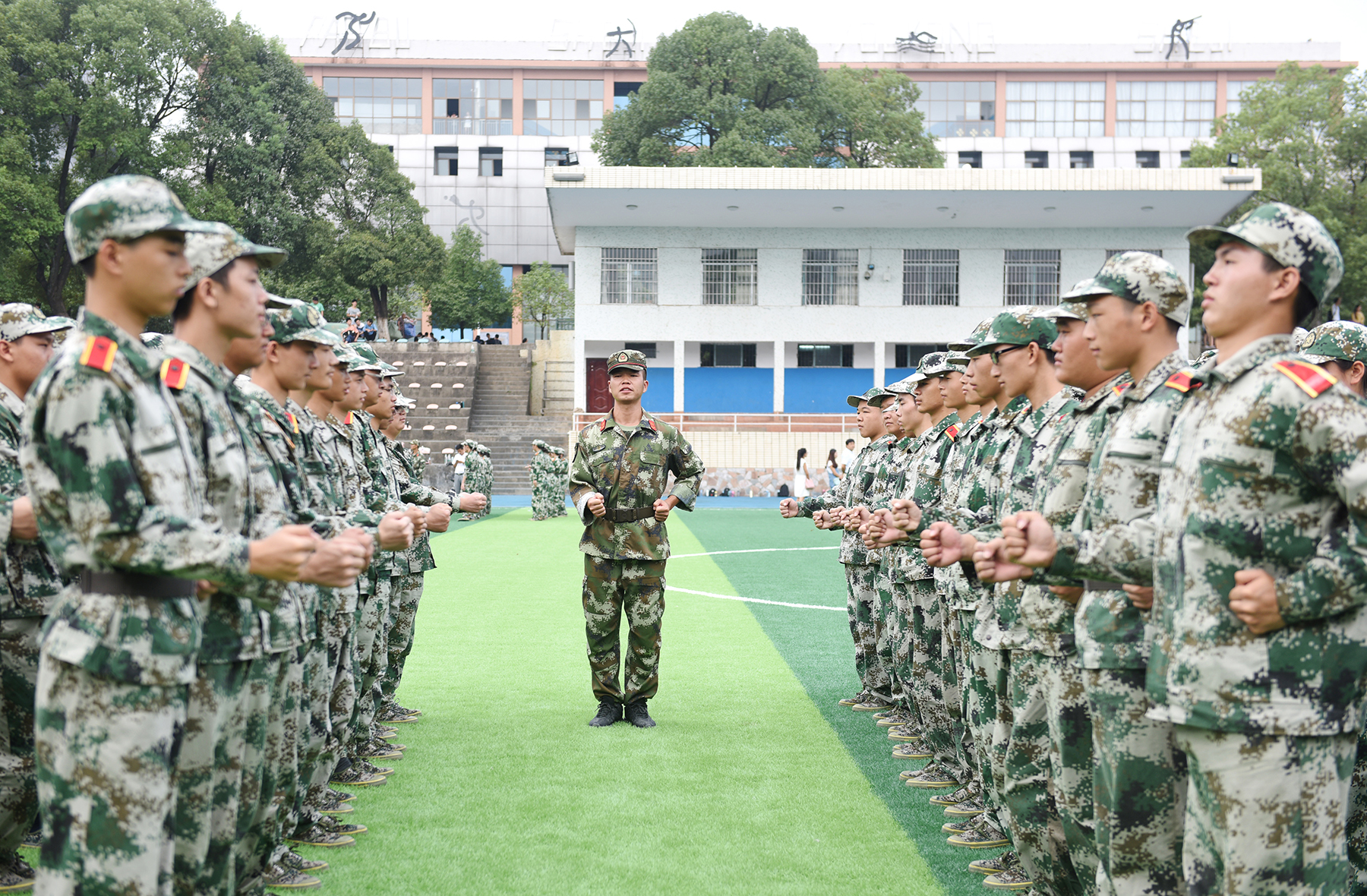 本网讯 军训,是学子的加油站,是青春的磨刀石,五彩斑斓的青春在军训的磨砺中熠熠发光。 9月18日起,我校4000余名新生将开启为期近两周的“军训时间”,新生们飒爽的英姿,成为了校园里一抹动人的“军装绿”。