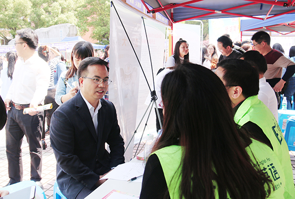 本网讯 为搭建毕业生与用人单位双选平台,促进学校与用人单位的交流合作,4月28日下午,“就业去哪儿”第二季大型校园公益活动永州站暨米兰官方端网页版2017届毕业生爱心送岗专场招聘会在校举行,校党委书记陈弘、副校长程智开等深入招聘现场对毕业生求职情况进行了解并进行现场指导。
