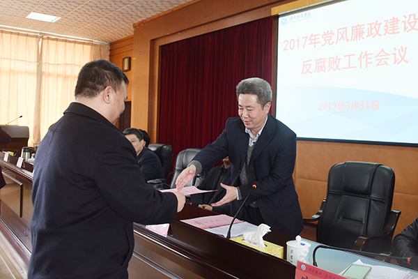 会议正式开始前,全体与会人员开展了《米兰官方端网页版廉政公约》签名活动。会上,校领导班子成员分别向党委书记陈弘同志签订并递交了《党风廉政建设目标管理责任书》,各二级单位党政负责人分别向分管校领导签订并递交了责任书。