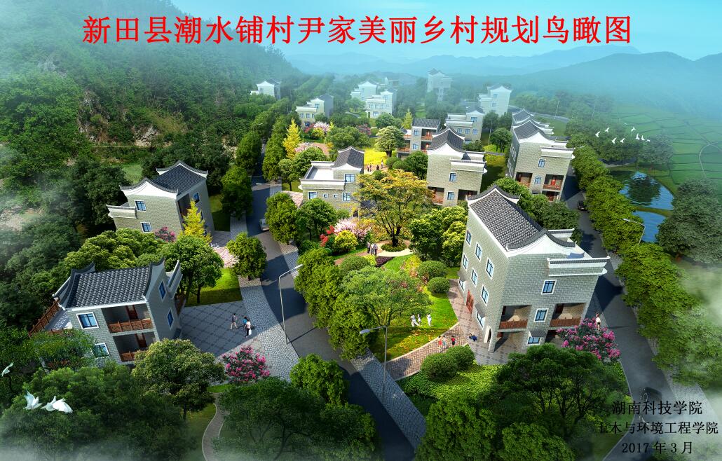 学校高度重视扶贫点的“美丽乡村”建设工作,组织技术专家成立潮水铺村“美丽乡村”服务团,团队成员先后十余次赴潮水铺村调研自然村现状,了解村民愿望,与新田县政府开展专题协调会,经过数次论证、图纸设计修正后,形成了潮水铺村“美丽乡村”建设规划方案和建筑提质改造设计方案。规划方案详实地展现了潮水铺自然村改造后的全貌,使全村确定并统一建筑风格;设计方案为建筑改造提供了技术保障,为打造美丽乡村奠定了坚实的基础。