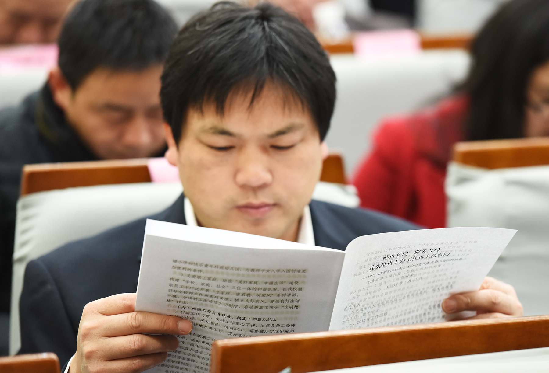 提前到达会场的代表们正在查阅会议资料