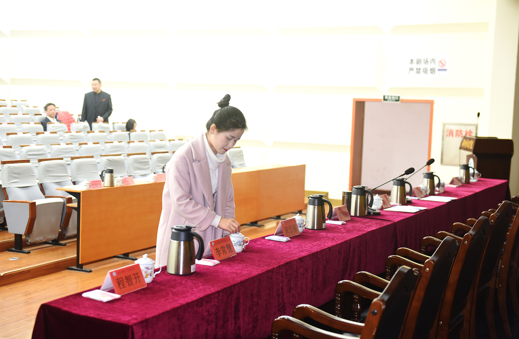 工作人员正在准备茶水