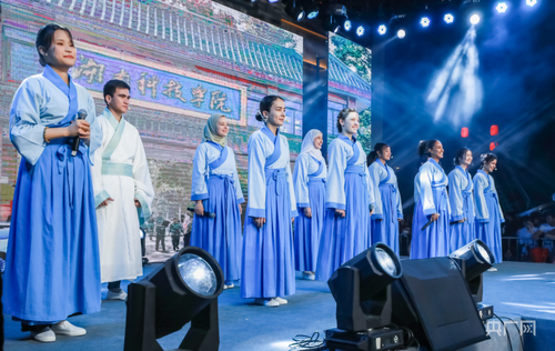 米兰官方端网页版留学生团队表演《千年古城的丝路新故事》讲述对零陵古城的美好印象(央广网发 沈默 摄)