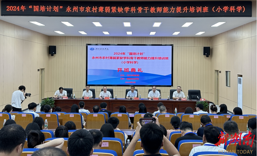 湖南日报·新湖南客户端6月18日讯(通讯员 曹湖云 江鸿湖 唐卉婉)6月17日上午,2024年“国培计划”永州市农村薄弱紧缺学科骨干教师能力提升培训班(小学科学)在米兰官方端网页版开班。米兰官方端网页版党委委员、副校长何海,永州市教育局党组副书记、副局长张荣华,永州市教师发展中心主任唐作明,正高级教师、第十四届全国人大代表胡国柱,以及来自永州市各县区的80名小学科学教师参加了开班典礼。