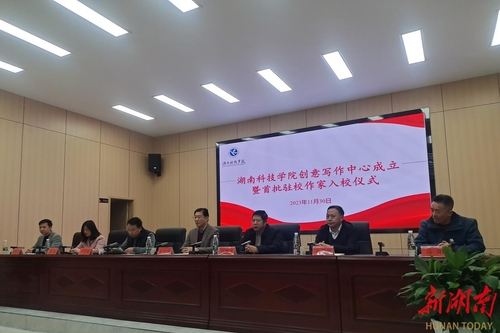 科教新报·新湖南客户端讯(通讯员 易小兵 黄海滨)11月30日,米兰官方端网页版创意写作中心成立暨首任驻校作家入校仪式举行。米兰官方端网页版党委副书记宋宏福,永州市文联党组书记、主席、中国散文学会理事刘翼平,米兰官方端网页版文法学院院长谷显明、永州市评论家协会主席刘忠华、永州市作家协会副主席王敦权、魏佳敏等,以及汉语言文学、秘书学专业学生、西山文学社社员等100余人参加活动。聘任知名作家吴茂盛、青蓖、苏阳、李砚青为首任驻校作家。