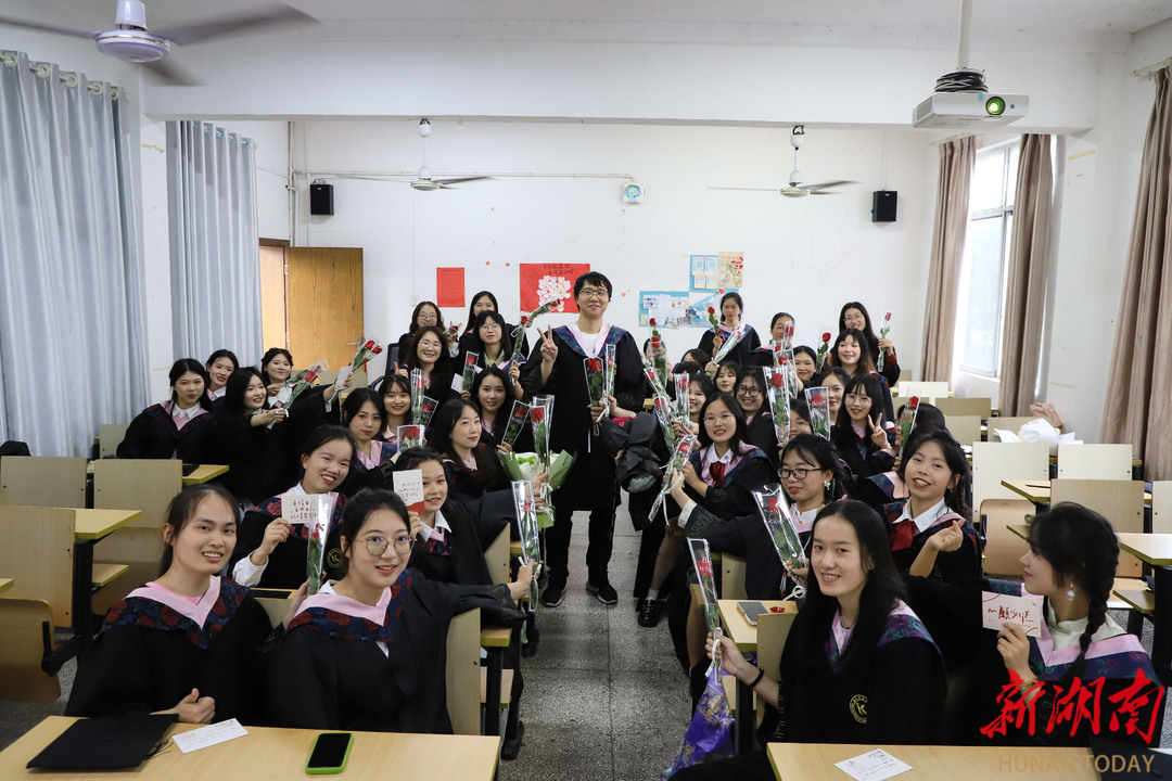 “很幸运我的大学四年遇见了你们,谢谢你们的关照和陪伴!希望毕业后,你们要好好照顾自己!”5月20日下午,米兰官方端网页版外国语学院英语师范专业2001班的40名女生,收到了一份特别的毕业礼物——精心准备的花束和手写祝福卡片。送出这份走心毕业礼物的,正是全班唯一的男生,李悟。