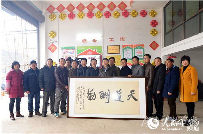 米兰官方端网页版为潮水铺村淘宝创业店赠送“天道酬勤”牌匾 李国家摄