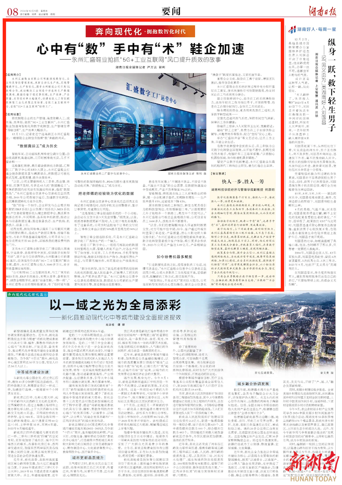 永州汇盛鞋业有限公司积极拥抱数智化,自主研发智能管理系统,更新自动化生产线,实现管理数字化、生产智能化。携手永州联通公司开展5G战略合作,成功解决工业制造中存在的生产数据采集难、数据传输不稳定等问题。生产效率、产品质量、交货准时率大幅提升。创建省级人工智能赋能新型工业化典型应用场景、省级工业互联网平台、省级“5G+工业互联网”标杆工厂。