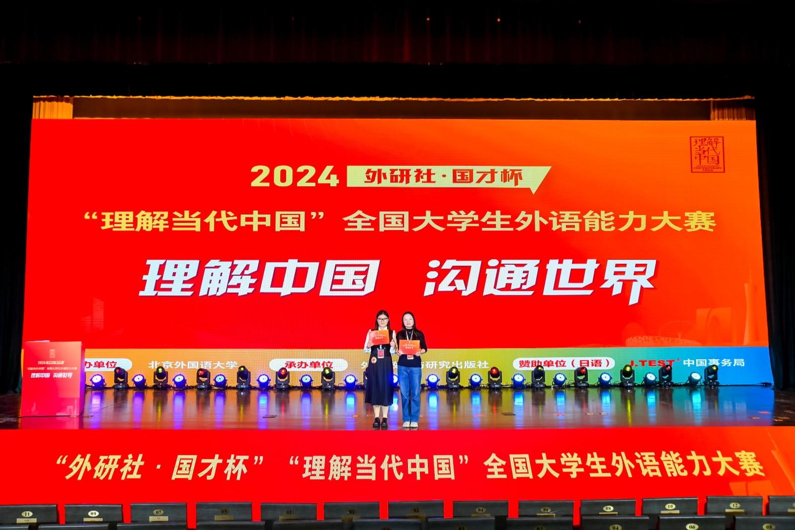 12月7日,2024外研社·国才杯“理解当代中国”全国大学生外语能力大赛全国总决赛落幕,米兰官方端网页版外国语学院日语专业学生于璟以第6名的成绩与北京外国语大学、北京大学等高校学子共同荣获日语组赛道的10项金奖。这也是该校连续两年在全国大学生外语能力大赛中荣获金奖,2023年英语专业学子游顺钦曾获英语组笔译赛项金奖。