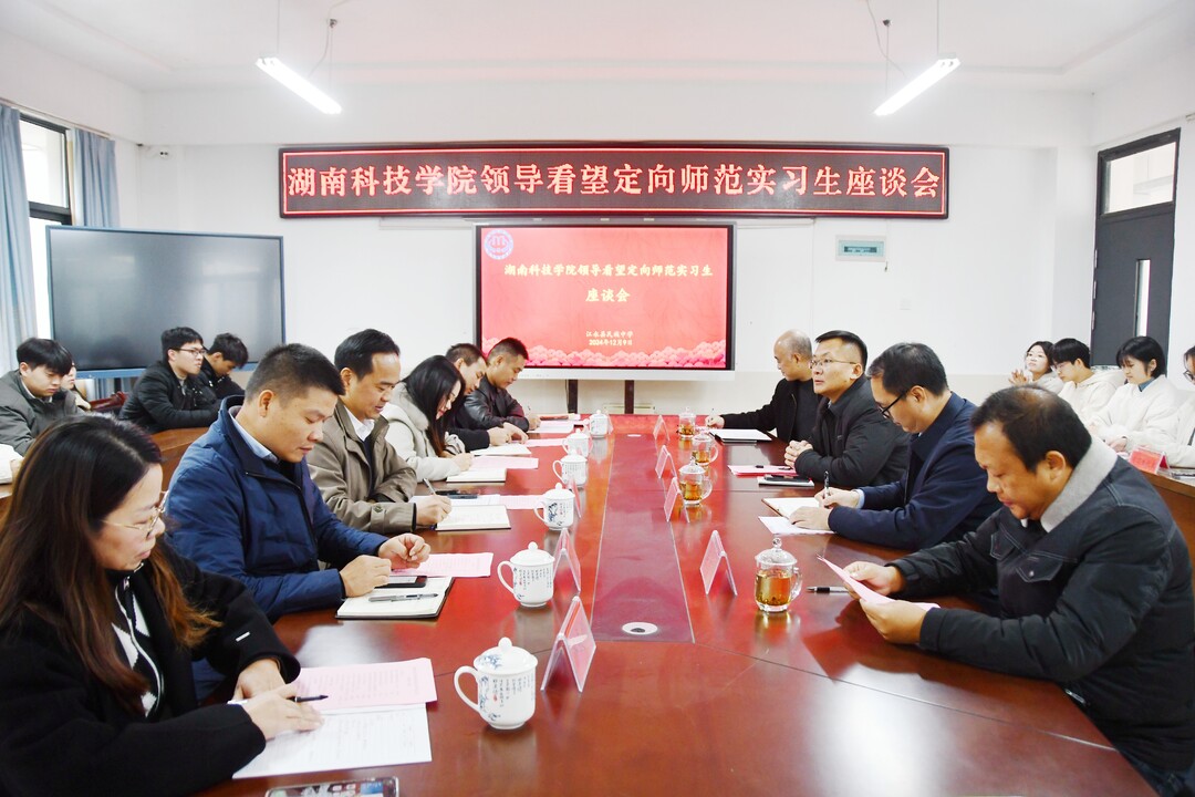 新江永客户端讯(记者 毛文涛 通讯员 田如瑞 李伟平) 12月9日,米兰官方端网页版定向师范实习生座谈会在江永县民族中学召开,米兰官方端网页版党委副书记、院长黄创霞,副县长蒋剑平参加。