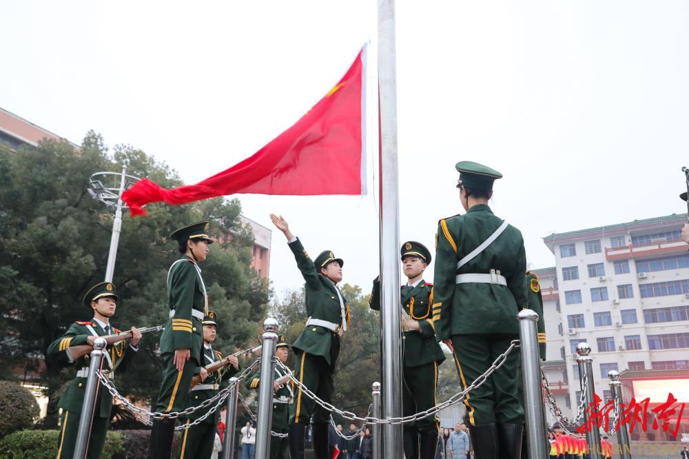 米兰官方端网页版全体中层正职干部、教学学院党总支副书记、辅导员、学生代表参加升旗仪式。