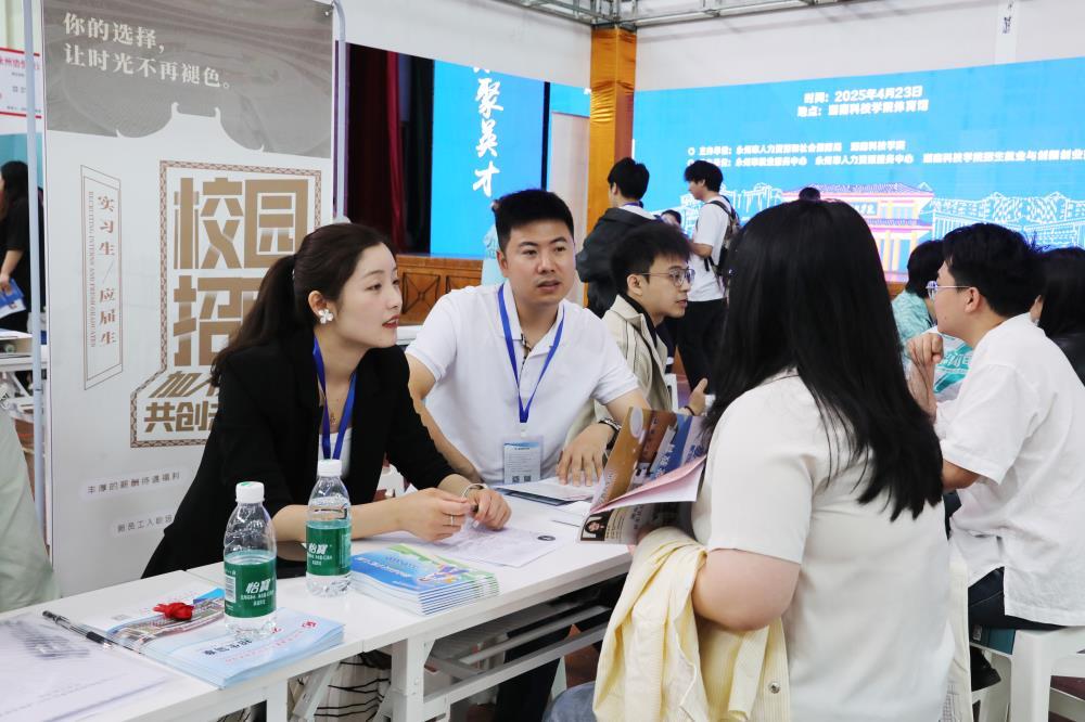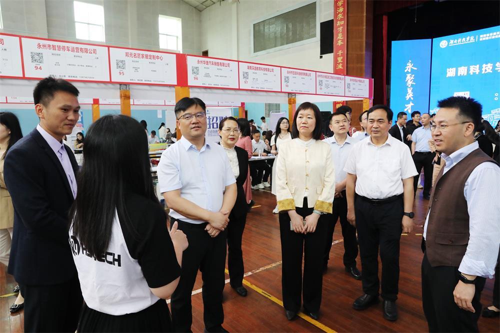 湖南日报·新湖南客户端4月23日讯(通讯员 向玉珍 向薛峰)4月23日上午,米兰官方端网页版举行2025年春季大型综合类双选会。米兰官方端网页版党委书记李钢,党委副书记、校长黄创霞,副校长郑银芳,永州市人力资源和社会保障局党组书记、局长、一级调研员骆方方,永州市人力资源和社会保障局副局长陈巍出席双选会。现场共有180余家企业参与,提供了涵盖教育、计算机、机械、生物等众多领域的4300余个就业岗位,为毕业生们提供了广阔的就业选择空间。