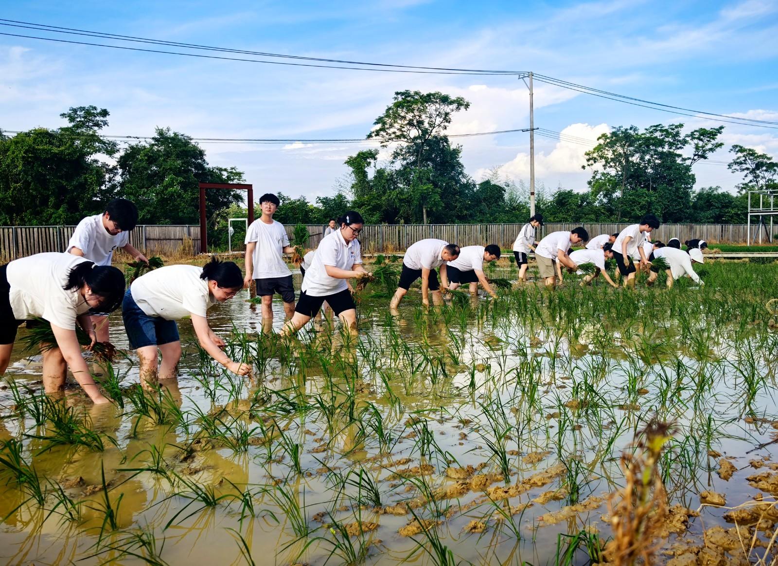 “插秧时注意‘浅、直、稳、匀’,行距保持一拳宽,秧苗要‘浅插不浮苗’……”在稻田实践区,有着丰富农事经验的老师一边示范插秧动作,一边讲解水稻种植与生态保护知识。大学生们手持秧苗,在老师手把手指导下逐渐掌握技巧,为水田披上嫩绿“新装”。该校外国语学院商英2401班赵威星同学感慨道,“通过田间实践劳动,才更深刻体会到‘粒粒皆辛苦’的重量。”