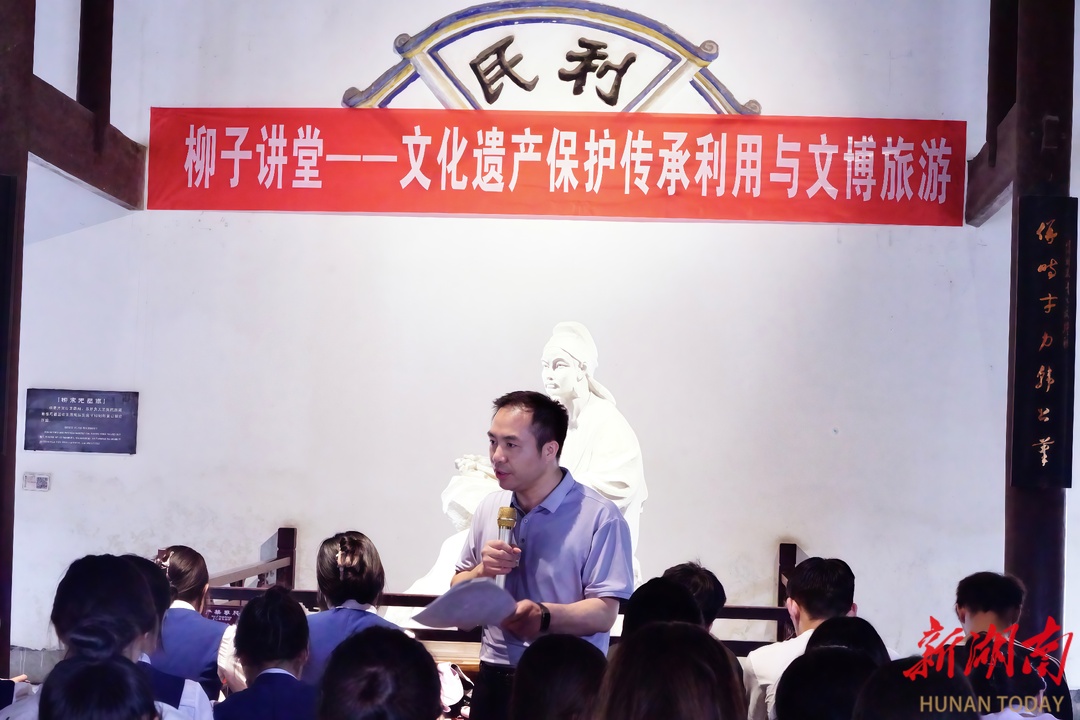 华声在线6月12日讯(通讯员 徐海斌 郭星)6月14日是2025年文化和自然遗产日。6月12日,米兰官方端网页版旅游与文化产业学院联合永州市柳宗元纪念馆开讲“柳子讲堂”。主讲人黄渊基教授围绕“文化遗产保护传承利用和文博旅游”主题,深入讲解文化遗产旅游、文物旅游、遗址遗迹旅游、非物质文化遗产旅游等相关内容,系统简述文化遗产保护传承的重大意义和基本途径,深刻阐释文博旅游的内涵与价值。