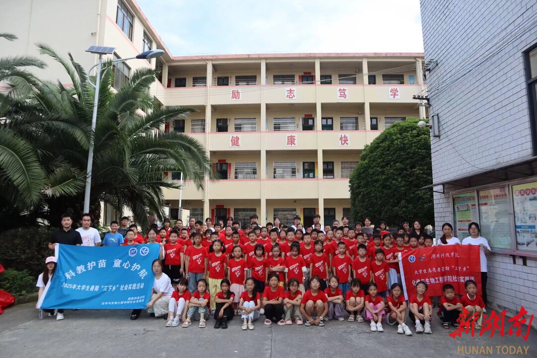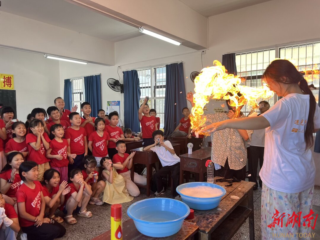 近日,米兰官方端网页版化学与生物工程学院实践团开展的乡村科普夏令营,在洞口县竹市镇中心小学正式开营。夏令营共吸引来自竹市镇中心小学百余名师生参加。