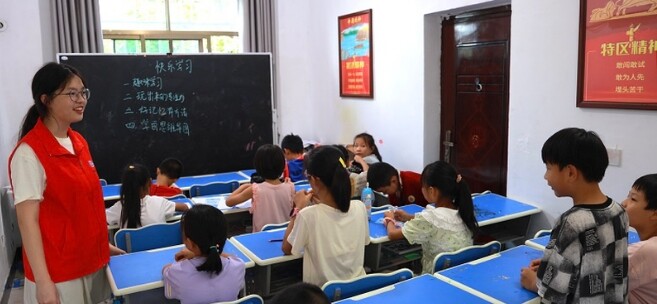 暑假期间,永州市共青团冷水滩区委持续深化实施青年志愿者行动,动员大学生志愿者走进基层服务农村留守儿童,切实加强对少年儿童的关心关爱,点亮孩子们的“七彩假期”。