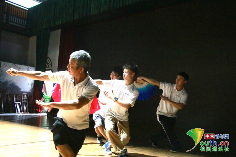 图为省级非遗传承人李江元指导队员们学习零陵花鼓戏。中国青年网通讯员 曾智康 摄