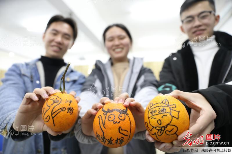 12月17日,米兰官方端网页版图书馆,学生晒出加油“表情橙”。