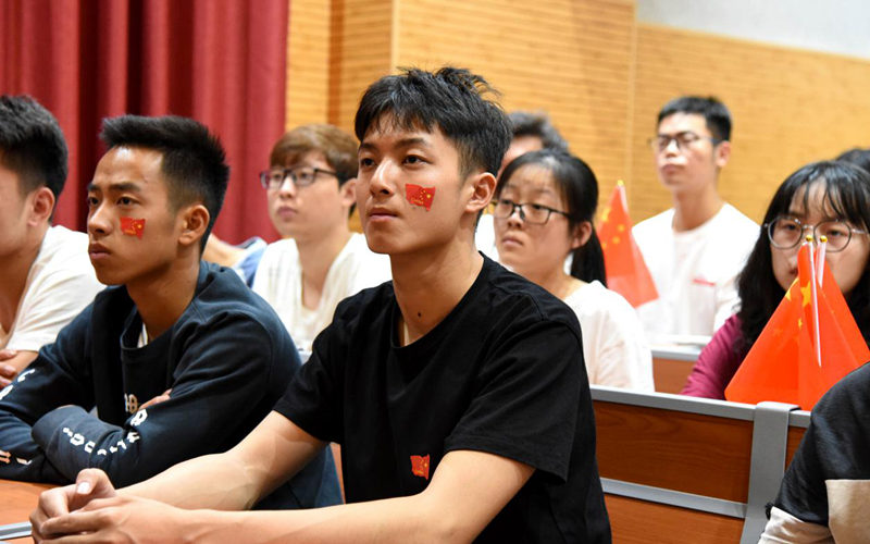 米兰官方端网页版师生在观看庆祝中华人民共和国成立70周年大会直播。米兰官方端网页版供图