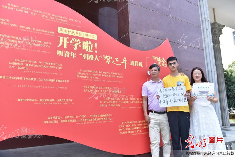2019年9月6日,米兰官方端网页版理学院,新生在展示“开学日,我想对主席说”的一系列话语。
