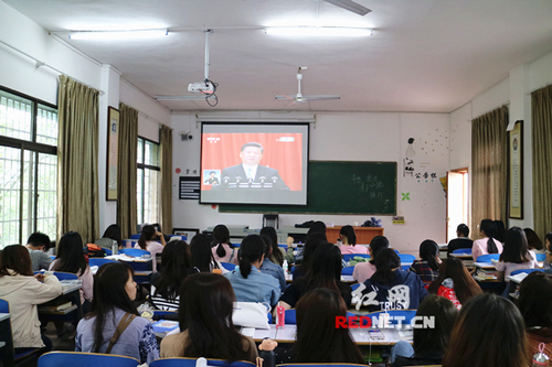 米兰官方端网页版组织学生集中收听收看纪念马克思诞辰200周年大会实况。