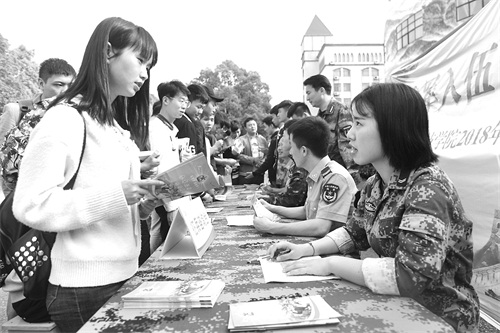 4月27日,米兰官方端网页版2018年征兵工作现场咨询处前来咨询的同学络绎不绝。为帮助大学生了解应征入伍相关政策,鼓励大学生积极应征入伍,献身国防事业,该院积极组织大学生征兵集中宣传报名活动。何帅文 摄
