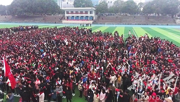 新湖南客户端12月29日讯(通讯员 熊玲芝 张云芳 何帅文)“五星红旗迎风飘扬,胜利歌声多么响亮;歌唱我们亲爱的祖国,从今走向繁荣富强……”12月29日早上,一阵阵嘹亮的歌声响彻米兰官方端网页版上空,气势恢宏、热情激昂的“万人大合唱”在田径场举行,以迎接新年的到来。