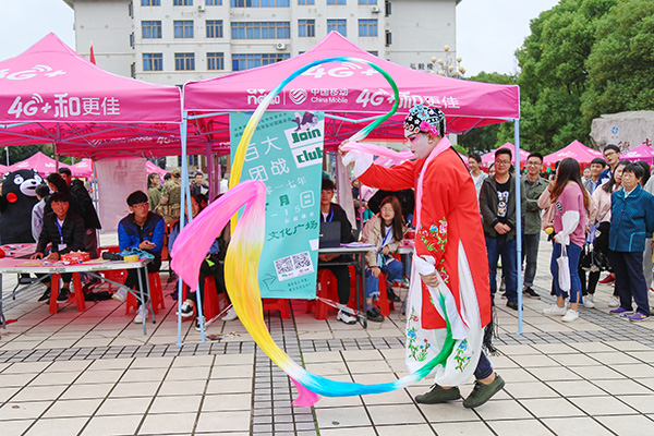 七夕汉服社的同学们身着汉服,或吟诗诵读,或翩翩起舞,或低声浅唱,清新古典,韵味十足;动漫社的同学们穿着cosplay服装,动漫形象栩栩如生,犹如从动漫里走出来一样;航拍协会与当下最“in”最潮新技术相结合应运而生,他们用航拍机凌空展示欢迎“萌新”加入的横幅,引得现场同学们纷纷叫好。传统,科技与二次元文化相互碰撞,社团招新现场精彩纷呈,同学们大呼过瘾。