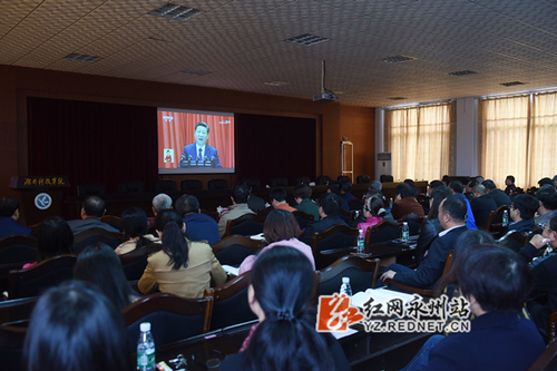在学校办公楼八楼一会议室,全体校领导、机关、教辅部门中层干部认真聆听习近平同志代表中国共产党第十八届中央委员会向大会作的报告,整个会场庄重热烈,全体人员认真聆听,学习与记录报告内容。在学校各多媒体教室、食堂、学生宿舍等场所,学校师生也集中进行了收看。在米兰官方端网页版定点扶贫村——新田县龙泉镇潮水铺村,扶贫干部组织村民集中进行了收看。