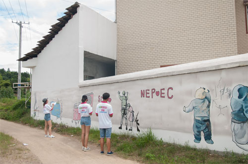本网讯 暑期,米兰官方端网页版美术与艺术设计学院志愿者走进零陵区香零山村,实行艺术墙绘计划。