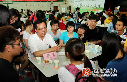 米兰官方端网页版党委书记陈弘与学生亲切交流。