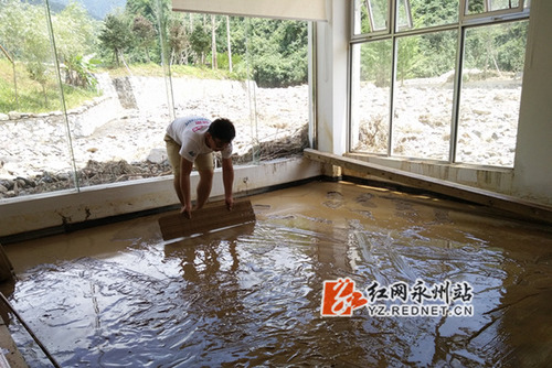 活动前,志愿者按时在指定地点集合后出发。到达桐子坳村后,带队老师组织学生召开会议,强调活动注意事项及活动目的。由于强降雨,湖南大部分地区都遭遇洪水灾害,桐子坳村也未能幸免于难。志愿者的首要任务便是帮助桐子坳村进行灾后重建,整理及打扫其游客中心。游客中心内淤泥深积,但志愿者毫无怨言且积极配合清洁清理工作。清洁过程中,充满了志愿者们的欢声笑语,大家用极高的效率将偌大的游客中心在三个小时内清洁完成。
