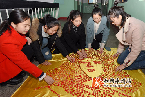 米兰官方端网页版学生用1300余枚党徽和团徽创作的“雷锋”画像作品完工。