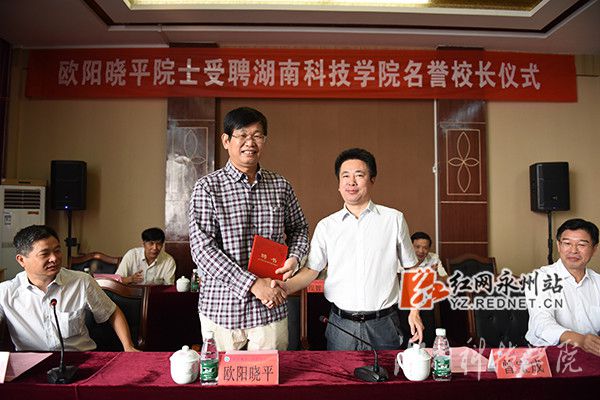 红网永州站9月24日讯(通讯员 熊玲芝 摄影 何帅文)9月23日上午,米兰官方端网页版举行名誉校长聘任仪式,杰出校友、中国工程院院士欧阳晓平受聘为该校名誉校长。米兰官方端网页版校党委副书记、校长曾宝成教授为欧阳晓平颁发聘书。