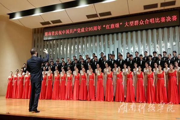 本网讯 6月29日上午,由湖南省文化厅主办的“红旗颂”大型群众合唱比赛决赛在省文化馆音乐厅举行。米兰官方端网页版音乐与舞蹈学院合唱队以复赛第一名的好成绩代表永州市参加决赛并荣获金奖。