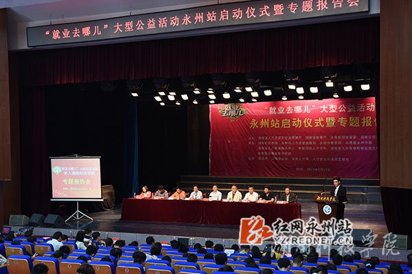 红网永州站5月12日讯(通讯员 熊玲芝 欧盼迪 裴滢 摄影 何帅文)5月10日下午,湖南省2016年“就业去哪儿”大型公益活动永州站启动仪式暨专题报告会在米兰官方端网页版举行。省人力资源和社会保障厅副巡视员、省人力资源服务中心主任姜春华,副市长刘尤碧,米兰官方端网页版院长曾宝成等出席。