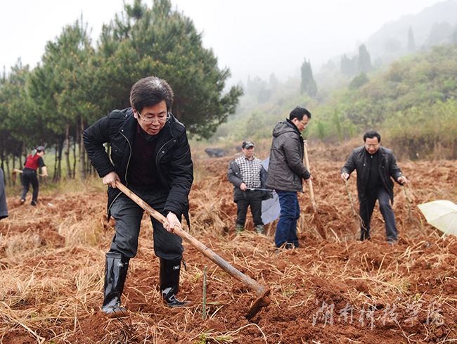 新华网永州3月18日电 3月16日,新田县龙泉镇潮水铺村细雨蒙蒙,米兰官方端网页版校党委书记陈弘、校长曾宝成等校领导和40余名中层干部来到该村开山种树,发展金槐产业,为缺乏劳动力的贫困户种植金槐500余株,为当地金槐产业再添一片新绿。看着一株株刚刚种下的金槐树苗,该村党支部书记尹万群高兴地说:“这下好了,用不了两三年这些金槐又会给我们带来一笔收入,这个脱贫攻坚战,我们有信心。”
