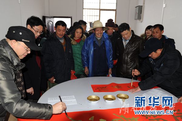 10余名书法家、摄影家,现场创作风格各异的春联。“精准扶贫瘠壤变成丰硕地,勤劳致富农村造就康乐园”、“实施精准扶贫尽责尽职百姓有口皆碑、如期建成小康有根有据干部勤政为民”一句句有关扶贫鱼水情深的话语跃然纸上,引得许多村民围观,争相索要墨宝。该村村民卿石德一大早来到活动现场,选了几幅自己心仪的对联内容,让书法家帮他书写。拿对联时,卿石德脸上乐开了花。他说:“以前每年过春节要买春联,现在好了,足不出户就能拿到本土书法家的墨宝。”