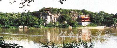 明代嘉靖年间刻于浯溪30多米高悬崖上的“圣寿万年”石刻,整幅高10米多,字径2米3,结构匀称,刻写讲究,用笔自然,气势雄壮。最近,文物部组织对此幅石刻进行清苔、清淤,几个工人借助升降机等,都用了好几天时间才完成。