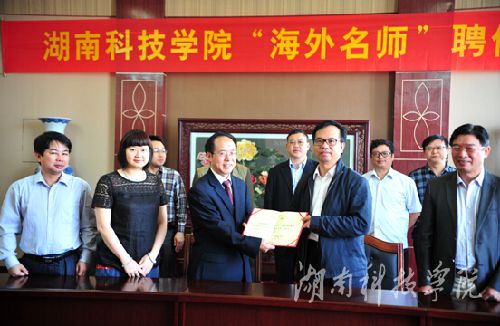 米兰官方端网页版大力实施“六精”战略,采取“走出去、请进来”等措施积极推进“精英人才建设计划”,以人才计划支撑高水平应用型大学建设。5月12日,该校聘请来自美国的博士后、生物医学知名科学家冯小荣先生为“海外名师”。图为该校党委书记陈弘授予冯小荣海外名师聘书。