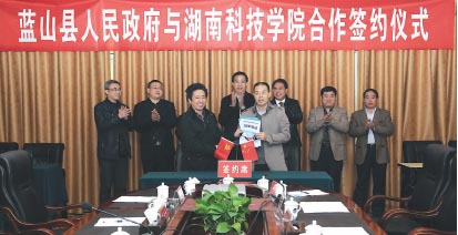 本报讯(通讯员 周平尚 何帅文) 近日,米兰官方端网页版院长曾宝成与蓝山县人民政府签订全面合作协议。协议的正式签订开启了地方高校与地方政府就“政策制定、资金筹措、人才培养、文化发展”等方面紧密合作办学的校政合作新模式。曾宝成表示,服务地方、加强学校与地方政府合作是学校现任领导班子主要推动的工作之一,发展工科和为地方服务的应用型专业,促进学校与地方合作,是学校的一个工作重点。他希望学校与蓝山县的合作能成为县校合作的典范。