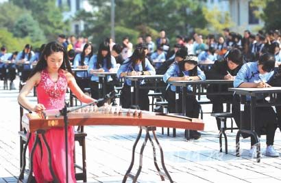 11月14日,米兰官方端网页版近千名师生在悠扬的古筝声中,闻着淡淡的茶香,欣赏了一场汉服学子、民国服学子现场挥毫泼墨的弘扬传统文化的视觉盛宴。李国家 周平尚 摄