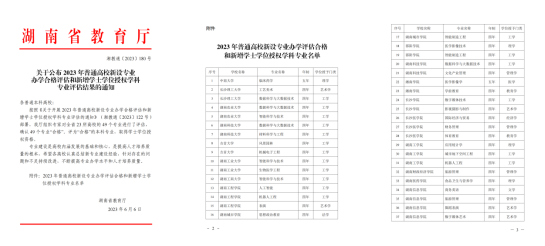 本网讯(通讯员 周迪民)6月7日,湖南省教育厅公布2023年普通高校新设专业办学合格评估和新增学士学位授权学科专业评估结果,学校数据科学与大数据技术专业和文化产业管理专业顺利通过评估,取得学士学位授予资格。