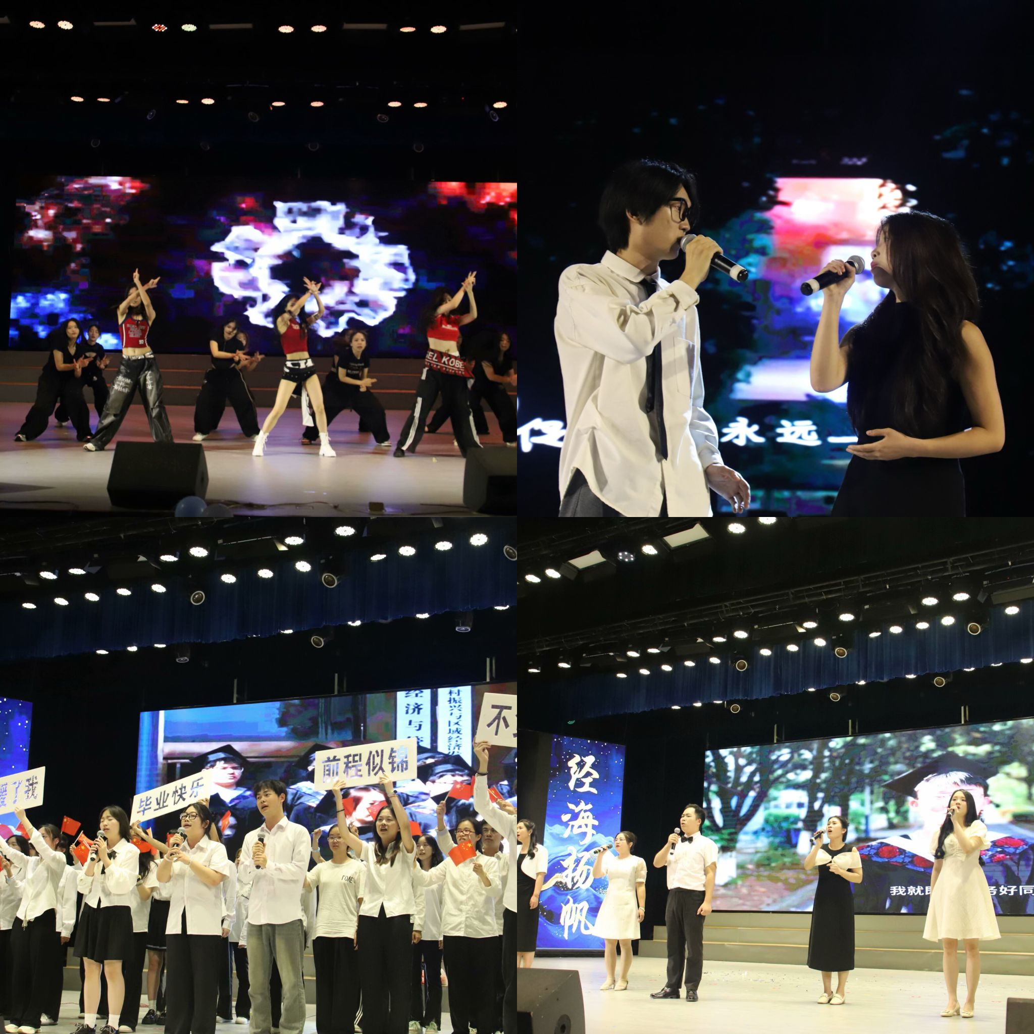 随着激昂音乐响起,精彩纷呈的节目轮番登场,一首首耳熟能详的青春之歌随风飘扬,将同窗情谊化作动人旋律,唱出了毕业生们对学校的眷恋,跃动的身影与绚烂的灯光交织,幕幕光影将珍藏的大学时光碎片一一勾勒。