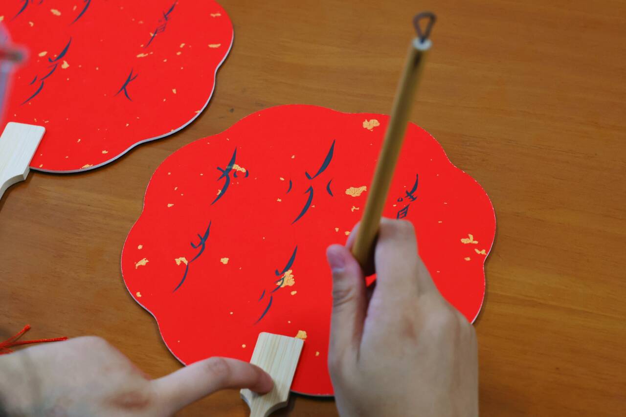 活动现场,“美好”“如意”“喜乐”“顺遂”等吉祥词语被精心写在扇子上,老师耐心讲解女书的历史渊源与书写技巧,低年级同学们在老师的指导下,纷纷发挥自己的文学才华,在扇面上挥毫泼墨。