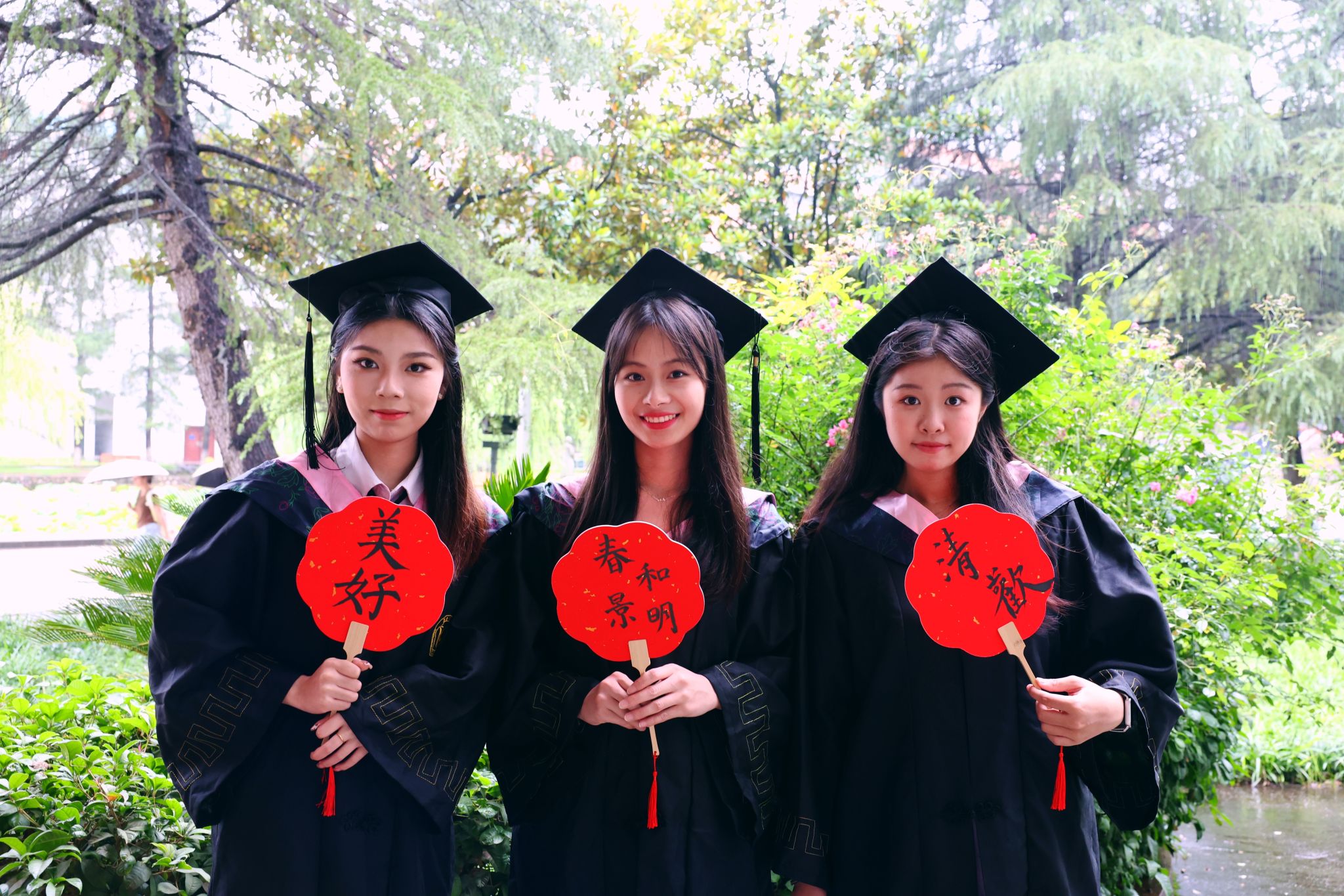 红色,在中国传统文化中象征着吉祥、喜庆与热情,扇子则蕴含着“散”与“聚”的美好寓意,不仅代表毕业时的暂时分离,更寄托着未来重聚的期许。